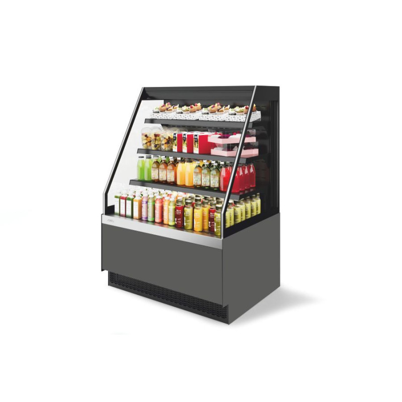 Витрина Кондитерская Vete II kub OF 130, Серый матовый/шлифованная нержавейка (T7016M.VG033.B7016M)- холодильная витрина открытого типа для продажи кондитерских изделий, полуфабрикатов, готовой еды в индивидуальной упаковки. Модель Vete II kub OF 130 идеально впишется в кофейни, магазины, мини-кафе, кулинарии, заведения формата to-go.