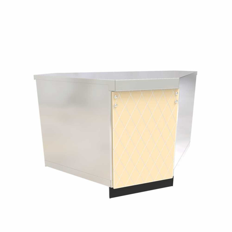Модуль поворотный внутренний МП-90Е-01 входит в серию линии раздачи «Сейла». Модель поворотный внутренний на 90 градусов MP-90E-01 имеет направляющие для подносов, подсветку, является нейтральным модулем.