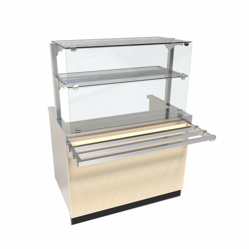 Прилавок-мармит электрический ПМЭС-70Е-02 входит в серию линии раздачи «Сейла». Оборудование предназначено для хранения в горячем состояние первых и вторых блюд. Модель имеет 3 конфорки, 2 полки для выкладки, направляющие для подносов, подсветку.